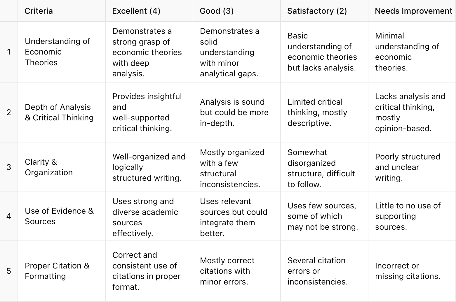 Grading Rubric: